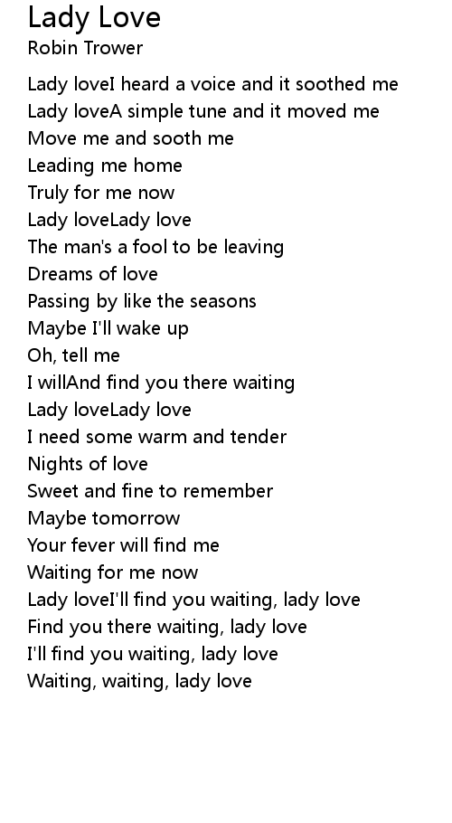 Lady loveI'll find you waiting, lady love |