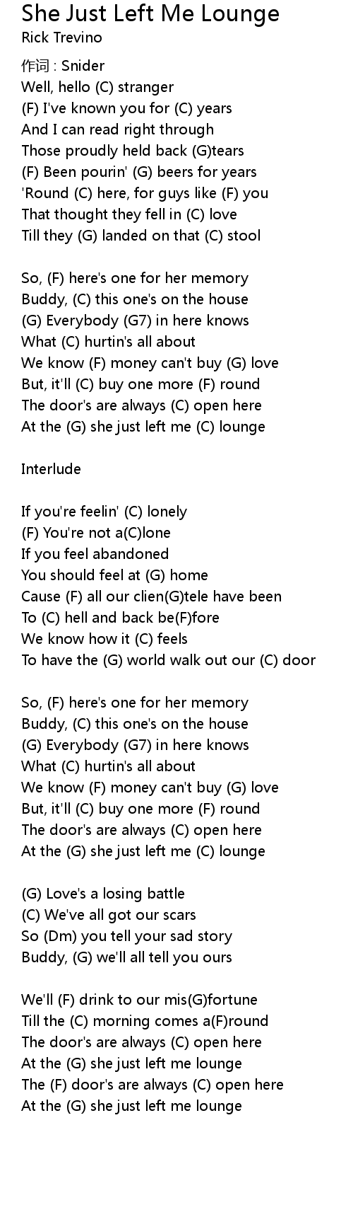 | At the (G) she just left me (C) lounge | |