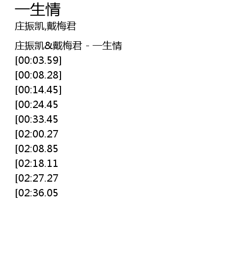 | [00:01.12] | 庄振凯&戴梅君 - 一生情 |
