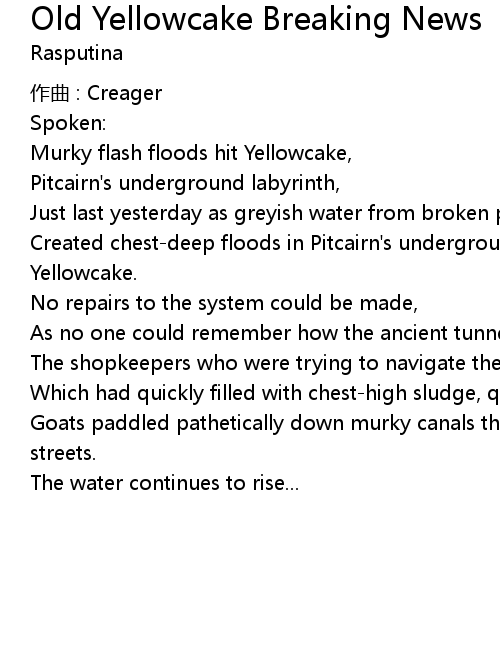 | Created chestdeep floods in Pitcairn' s underground labyrinth excity of Old Yellowcake. | |