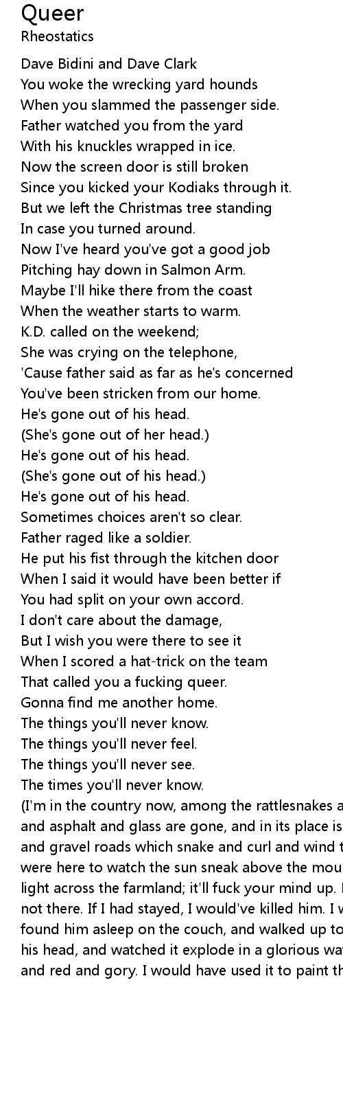 (I'm in the country now, among the rattlesnakes and the sage-brush. The concrete and asphalt and glass are gone, and in its place is well water and black spruce and gravel roads which snake and curl and wind through the valley. I wish you were here to watch the sun sneak above the mountains and play with the pure light across the farmland; it'll fuck your mind up. But I'm glad I'm here and not there. If I had stayed, I would've killed him. I would have come home and found him asleep on the couch, and walked up to him and pressed the gun against his head, and watched it explode in a glorious watercolor fountain, all thick and red and gory. I would have used it to paint the picture I'm seeing now.) |