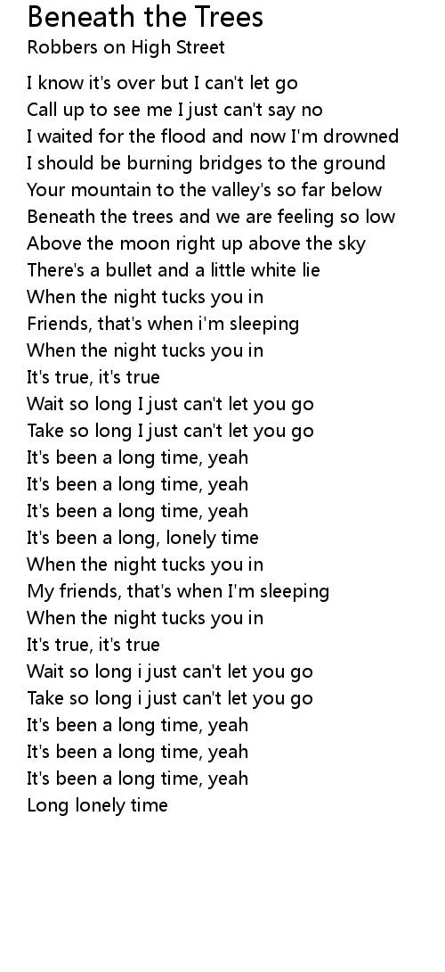 Beneath the trees and we are feeling so low |