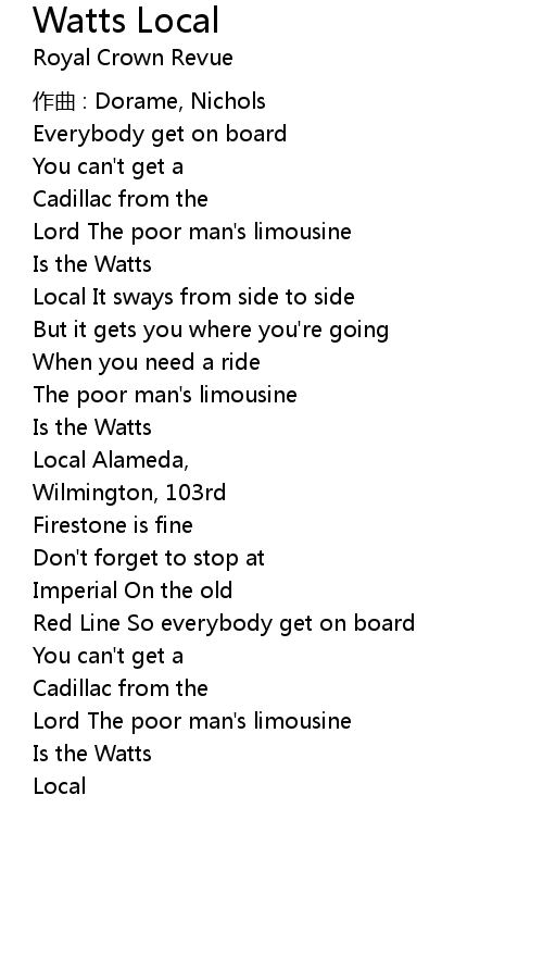 | Song | Watts Local |