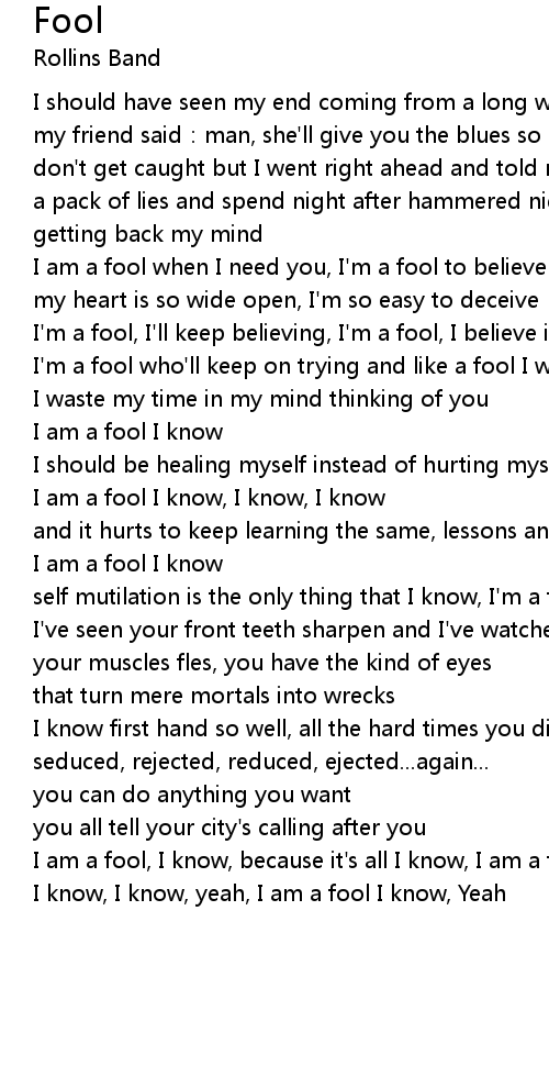 | I am a fool, I know, because it' s all I know, I am a fool I know | |