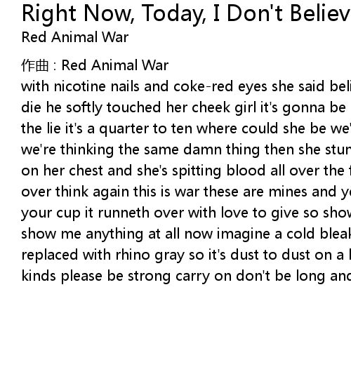 | Song | Right Now, Today, I Don't Believe in Hell |