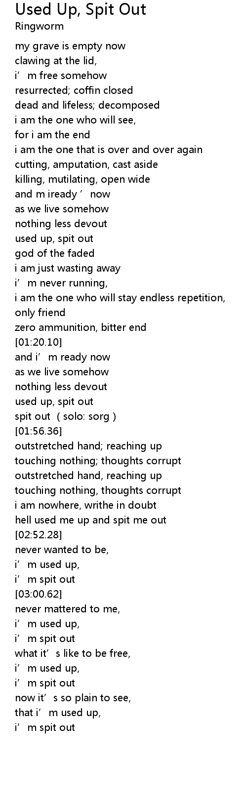 | [02:35.04] | i am nowhere, writhe in doubt |