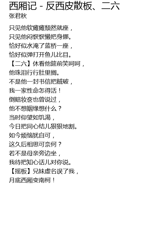 | Song | 西厢记 - 反西皮散板、二六 |