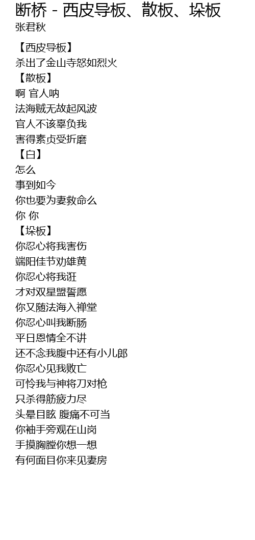 | Song | 断桥 - 西皮导板、散板、垛板 |