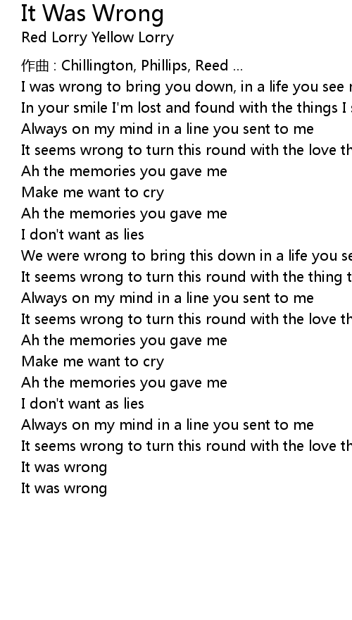 | Song | It Was Wrong |