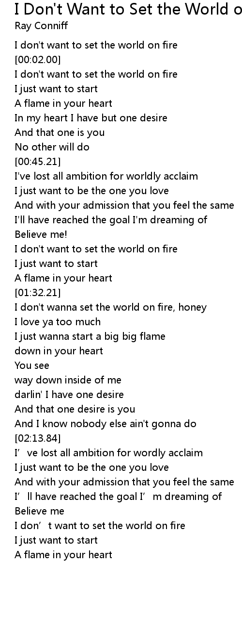 | [00:00.00] | I don't want to set the world on fire |