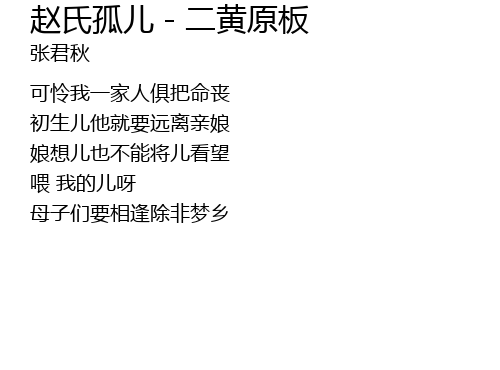 | Song | 赵氏孤儿 - 二黄原板 |