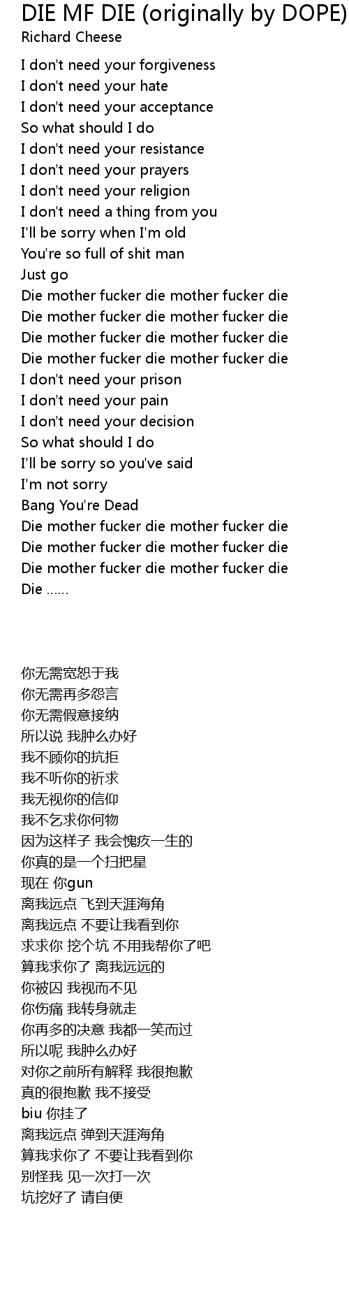| [01:56.48] | Die mother fucker die mother fucker die |
