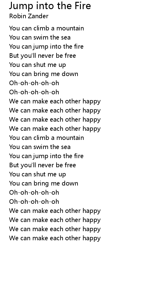You can jump into the fire |
