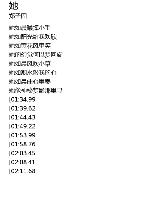 | [03:34.53][02:03.45] | 她经过那一刻 |