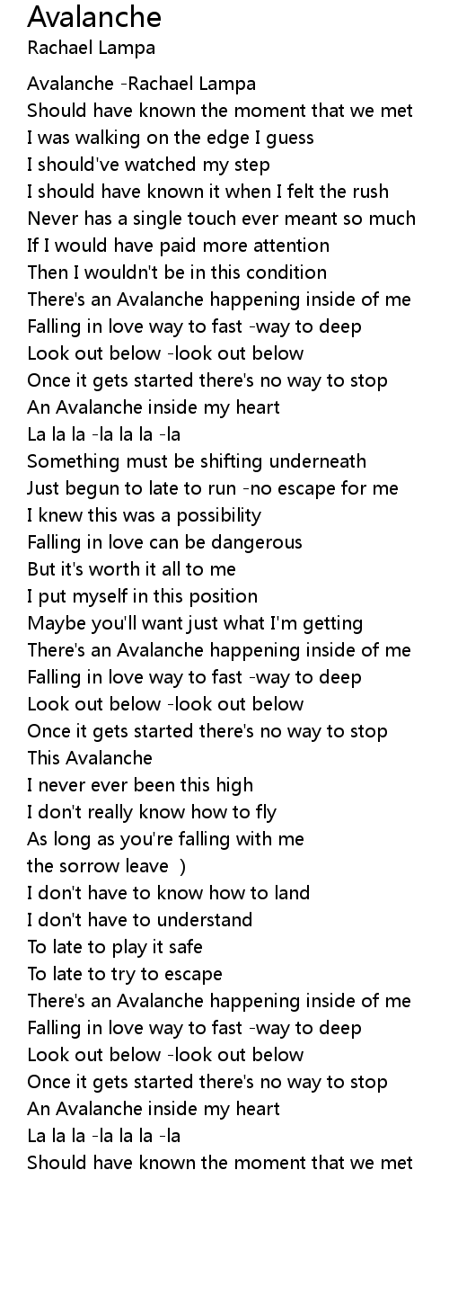 | [03:06.159] | There' s an Avalanche happening inside of me |