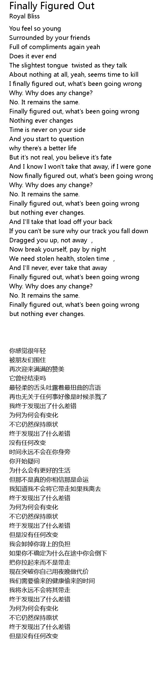 | Song | Finally Figured Out |