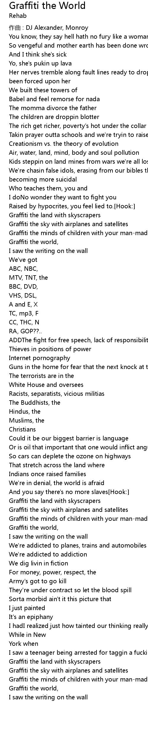 | I saw a teenager being arrested for taggin a fuckin wall. Hook: | |
