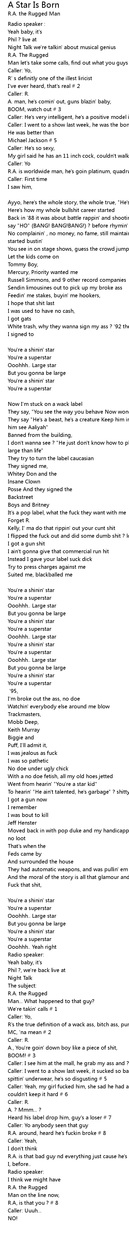 Caller: He's very intelligent, he's a positive model in rap # 4 |