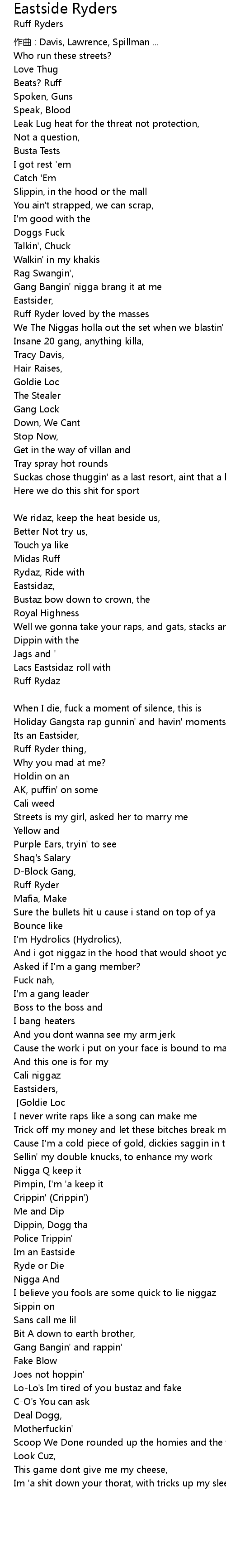 | Ruff Ryders and you can die in an ally niggaz Chorus Goldie Loc | |