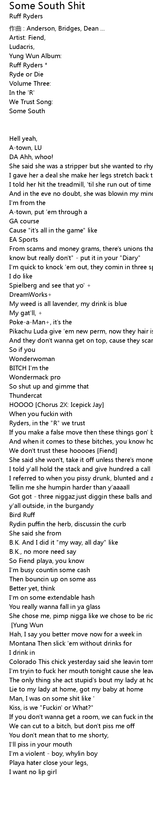 | DoubleR then stole ya bitch Chorus Yung Wun | |