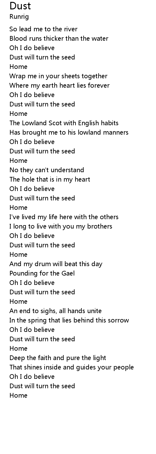 | Dust will turn the seed | |