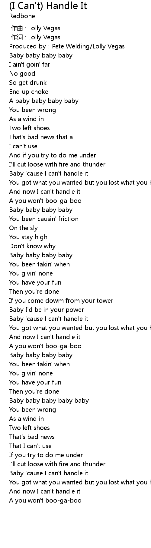 | [01:54.43] | Baby ' cause I can' t handle it |
