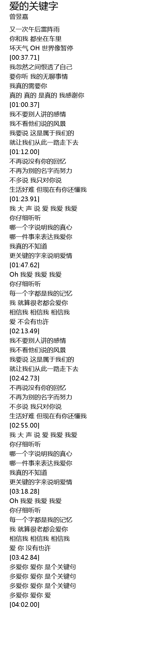 | [03:53.20] | 多爱你 爱你 是个关键句 |