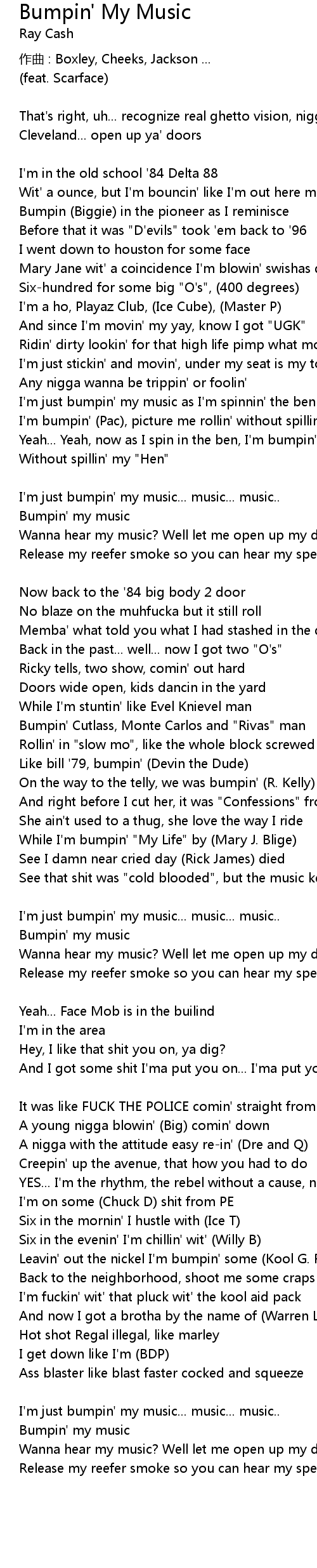 | Release my reefer smoke so you can hear my speakers blow.. | |