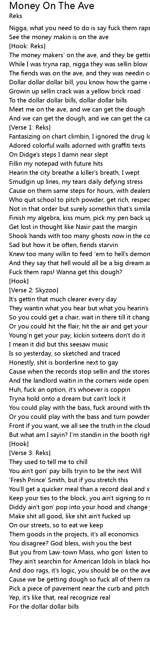 The money makers' on the ave, and they be gettin dough |