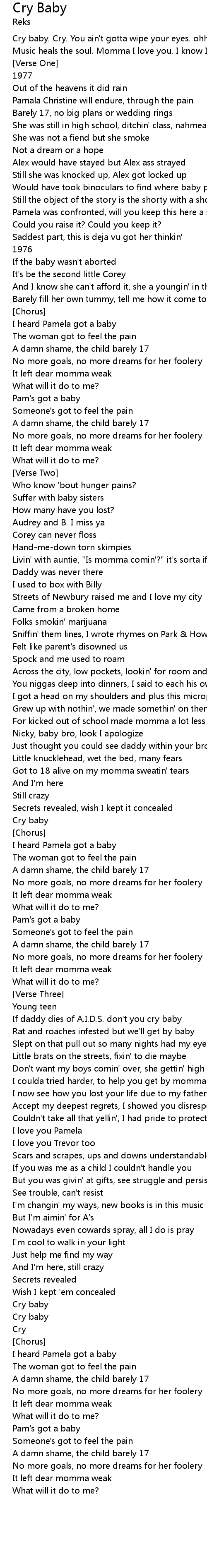 Cry baby. Cry. You ain't gotta wipe your eyes. ohh |