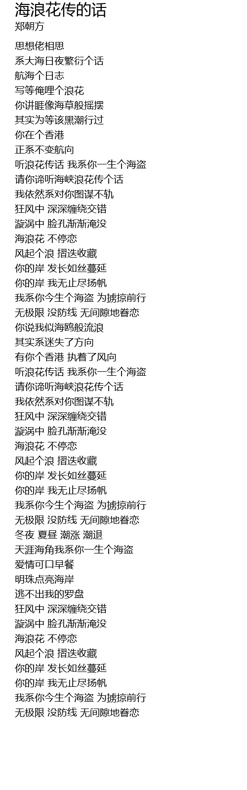 | [02:45] | 听浪花传话 我系你一生个海盗 |