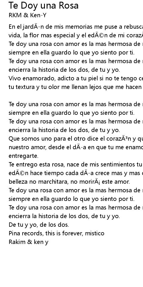| Te doy una rosa con amor es la mas hermosa de mi coraz n y cada p talo encierra la historia de los dos, de tu y yo. | |