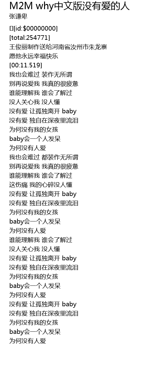 | [00:02.78] | 王俊丽制作送给河南省汝州市朱龙寨 |