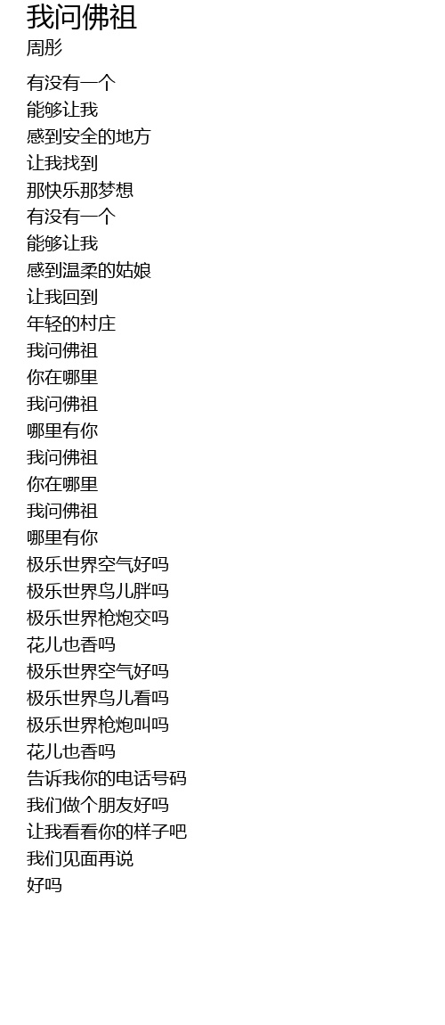 | [02:23.96] | 极乐世界鸟儿看吗 |
