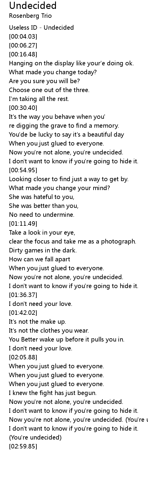[02:45.46] Now you're not alone, you're undecided. (You're undecided)