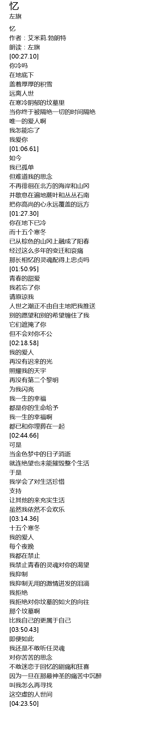 | [04:08.98] | 不敢迷恋于回忆的剧痛和狂喜 |