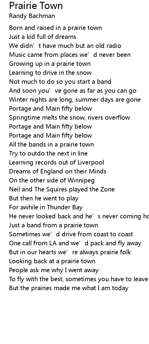 | Born and raised in a prairie town | |
