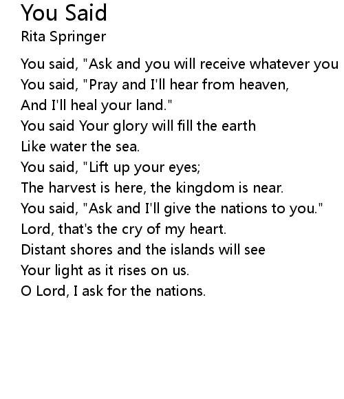 | You said, "Ask and I'll give the nations to you." | |