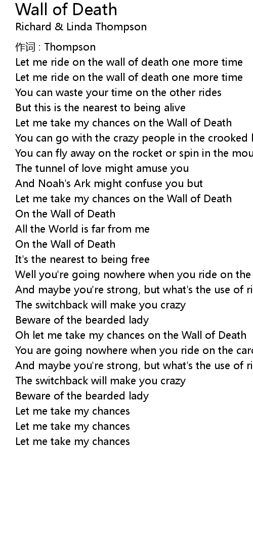 | Oh let me take my chances on the Wall of Death | |