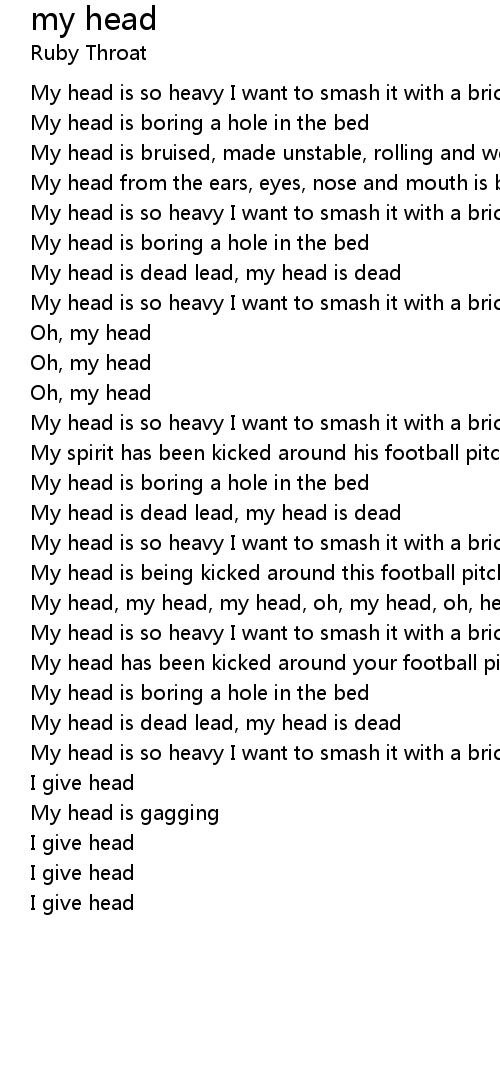 My head, my head, my head, oh, my head, oh, head, head, head, head, I give head |
