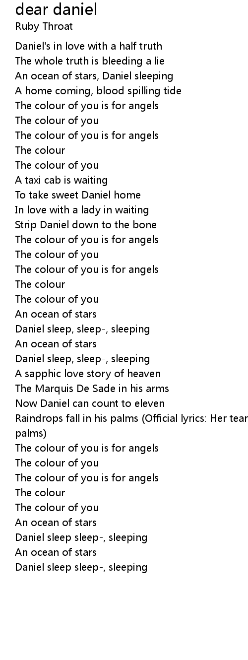 Raindrops fall in his palms (Official lyrics: Her teardrops to catch in his palms) |