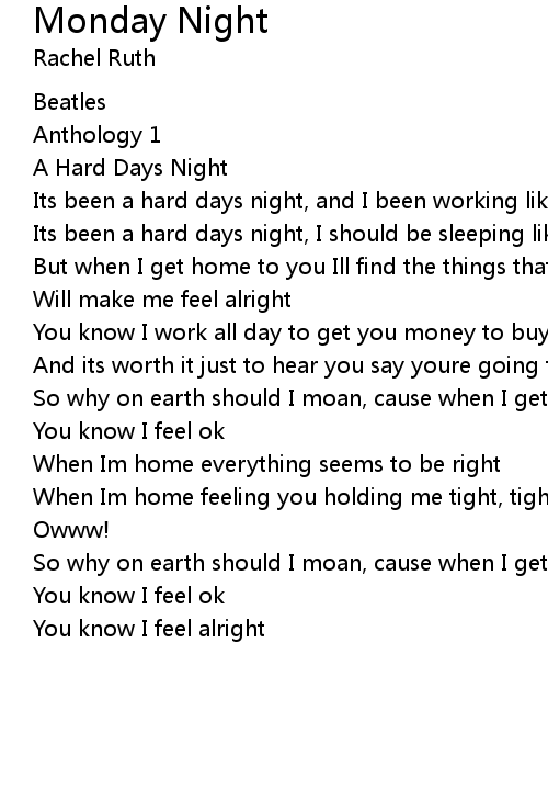 Its been a hard days night, and I been working like a dog |
