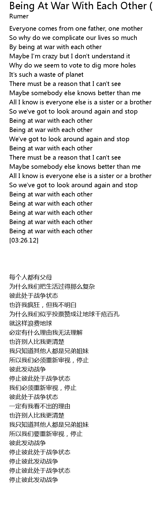 [03:23.41] Being at war with each other