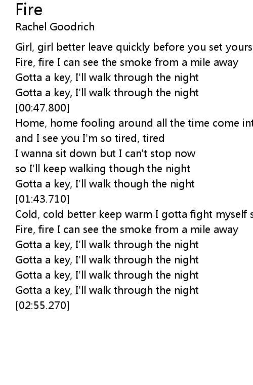 | [02:09.930] | Fire, fire I can see the smoke from a mile away |