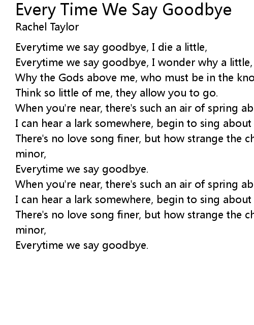 Everytime we say goodbye, I die a little, |