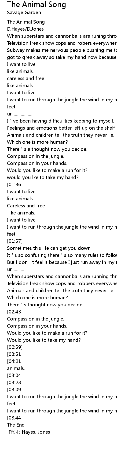 | [04:25][04:21][04:17][04:13][04:09][04:04][04:00][03:52][03:19][03:03] | like animals. |