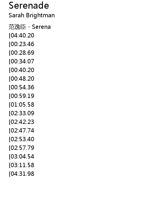 | [04:08.00][02:57.79] | Serena 我用幸福交换你的礼物 是孤独 |