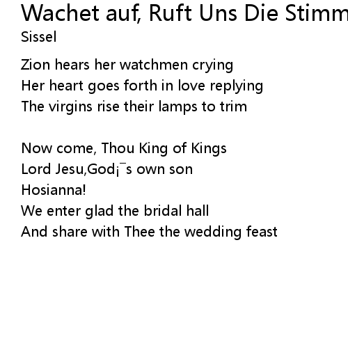 | Song | Wachet auf, Ruft Uns Die Stimme |