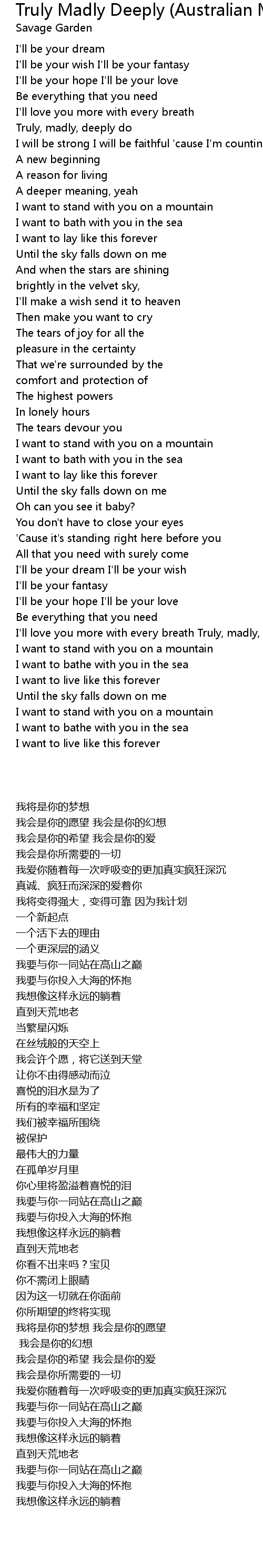 [02:51.740] I'll love you more with every breath Truly, madly, deeply do