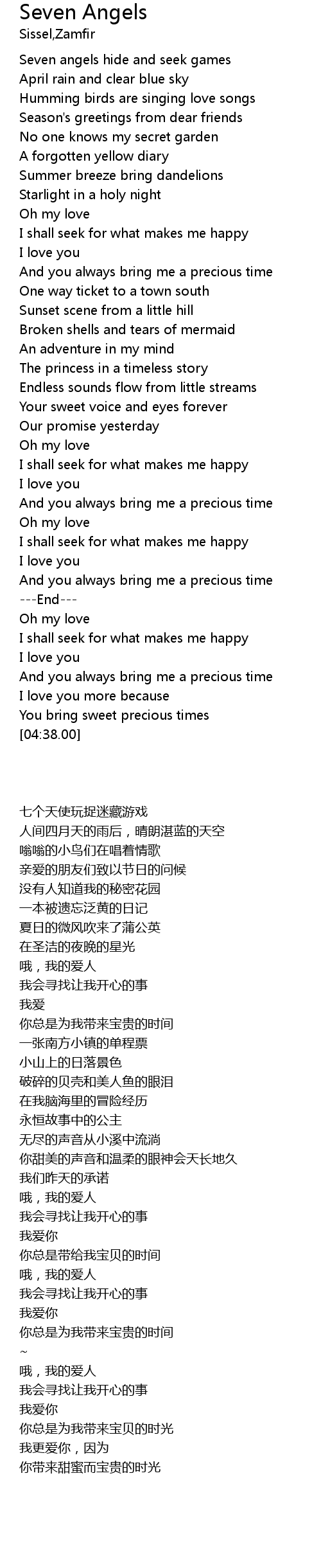 | [00:14.25] | Seven angels hide and seek games |